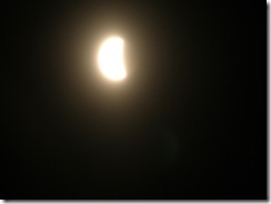 But last night the Eclipse of the Moon started here at 9:50 P.M. and reached 100% about 10:20 P.M. There were a few wispy clouds but all in all a good show.